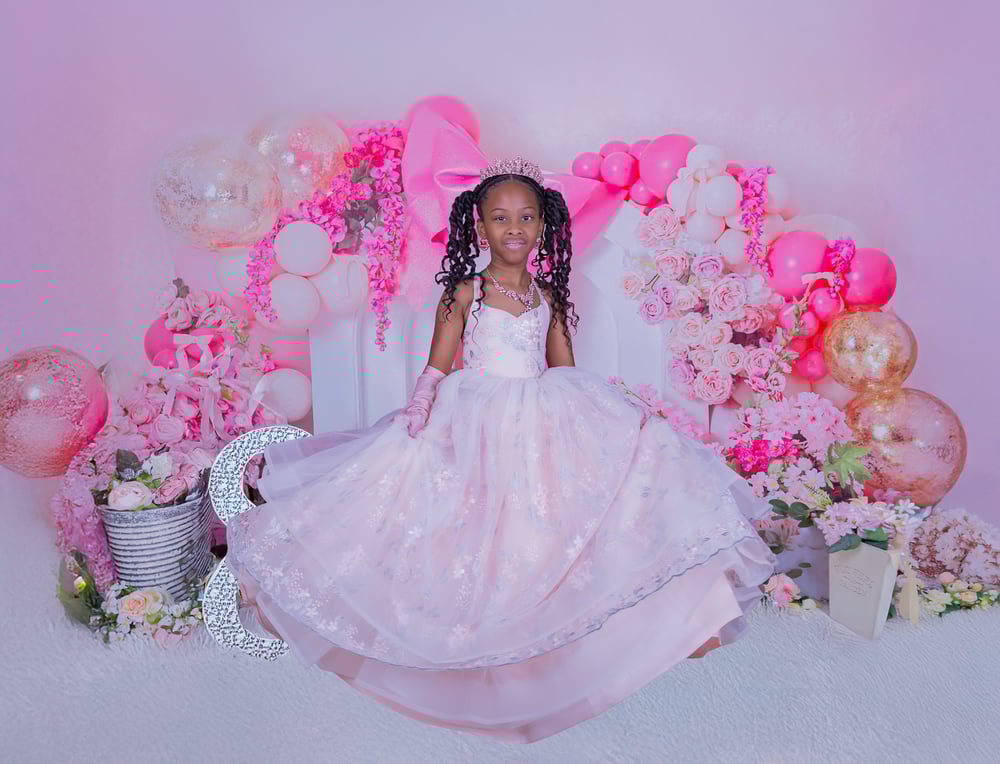 Due to the smaller size of this set up (7 feet wide by 5 feet high), sessions on this set are ideal for one child or up to 3 seated, snuggled children or a seated adult with a child looking for a beautiful Valentine’s experience for their children with a chic, luxury feel.